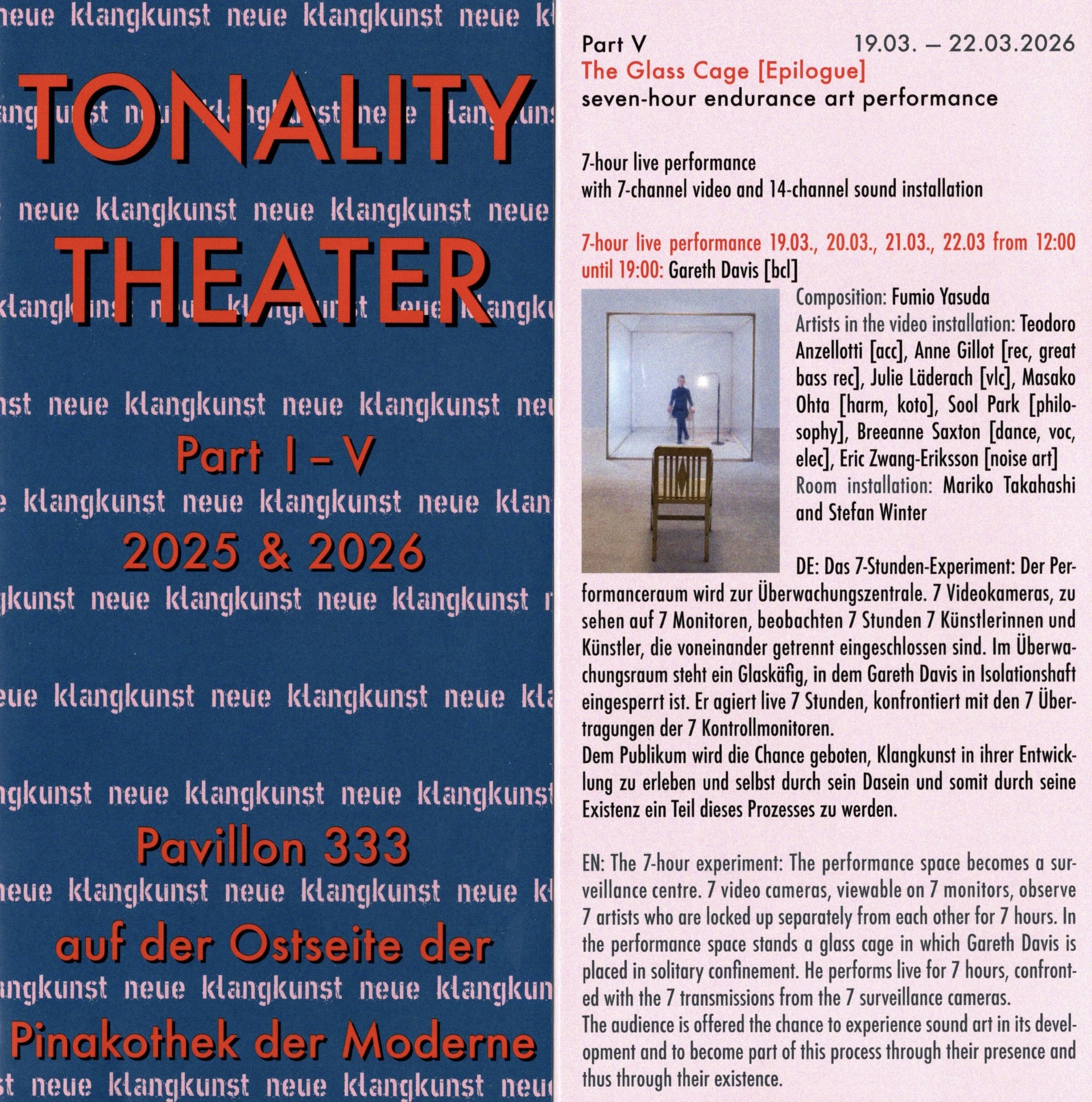 Tonality Theaterの目的は、サウンドアート、作曲を伴う学際的な作品、そして音の持つ物語る力を可能にすることです。音と他の芸術やメディアが融合し、一つの完全な作品を形作るインターメディア的な芸術形式を目指しています。